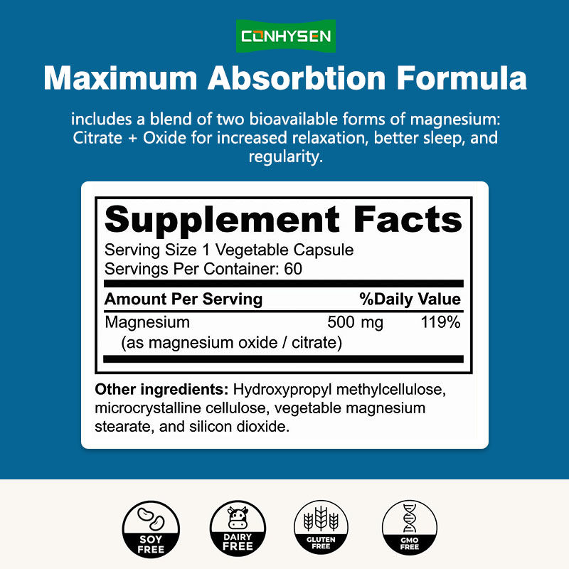 كبسولات المغنيسيوم هي مكملات غذائية تتكون أساسًا من عناصر المغنيسيوم أو مركبات المغنيسيوم ، وتهدف إلى تزويد الجسم بالمغنيسيوم المعدني اللازم.كالمكانيون الرابع في جسم الإنسان، المغنيسيوم يلعب دورا حاسما في أكثر من 300 تفاعل كيميائي حيوي، والمشاركة في العمليات الفسيولوجية الهامة مثل استقلاب الطاقة، وتوليف البروتين، ونقل الإشارات العصبية.كبسولات المغنيسيوم تحتوي على أشكال مختلفة من أملاح المغنيسيوم، مثل أكسيد المغنيسيوم، والغليسين المغنيسيوم، والغليسين المغنيسيوم، داخل الكبسولات،توفير وسيلة مريحة وفعالة لتكملة المغنيسيوم للأشخاص الذين يعانون من كمية كافية من المغنيسيوم بسبب نظام غذائي متوحد أو الاحتياجات الفسيولوجية الخاصة.