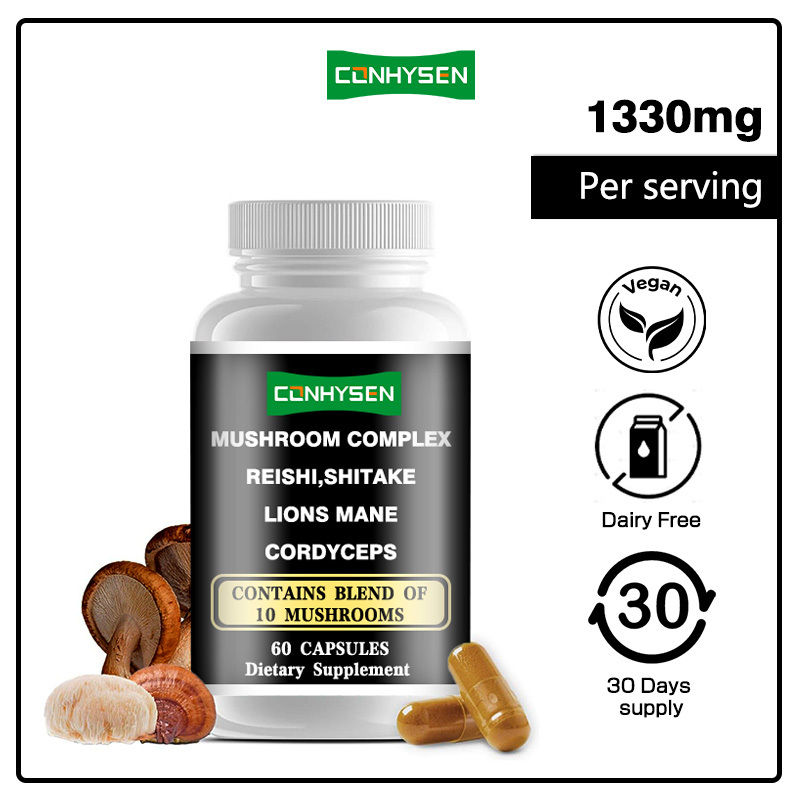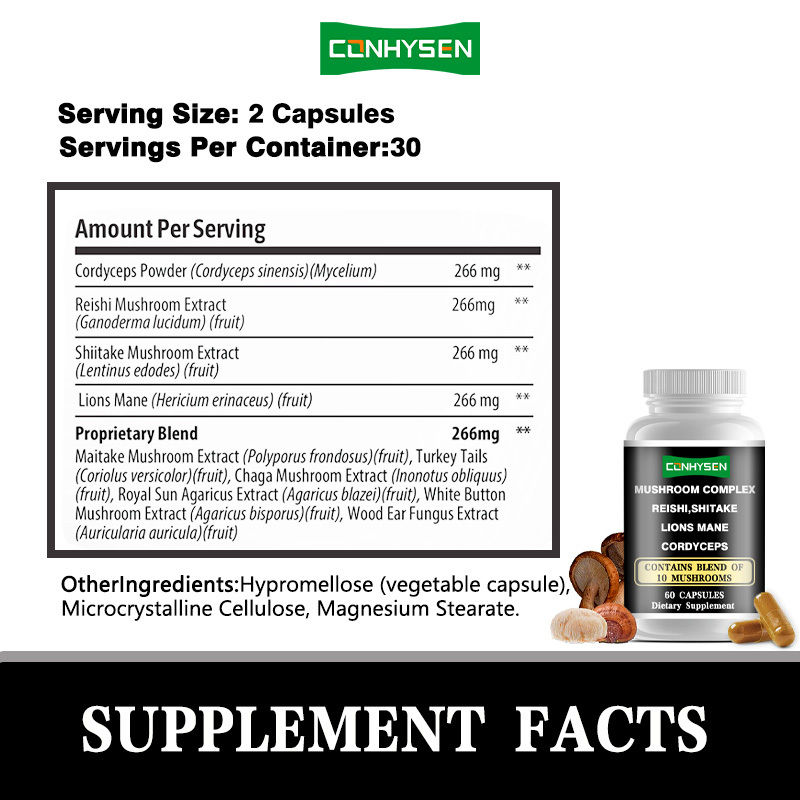 الملصقات الخاصة الفطر المعقد كبسولات تعزز المناعة صحة الأمعاء الطاقة 10 الفطر