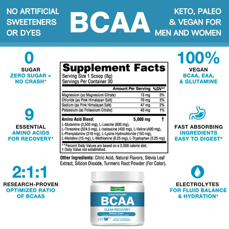 إمدادات المصنع استرداد نظيف BCAA مسحوق يدعم توازن السوائل إصلاح العضلات صفر السكر