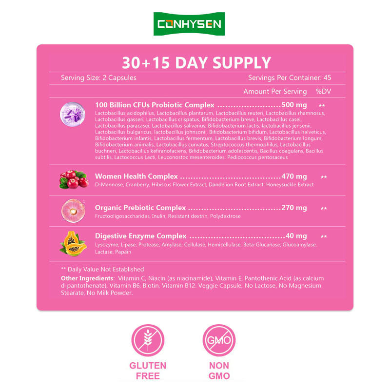 Tيستخدم المنتج تكنولوجيا متقدمة مقاومة للأحماض لضمان أن البروبيوتيك تبقى نشطة للغاية وتصل إلى الأمعاء بعد مرورها من خلال البيئة الحمضية للمعدة,وبالتالي تمارس فعاليتها المثلى. بالإضافة إلى ذلك ، توفر البريبيوتيكات المضافة طاقة مستمرة للبروبيوتيكات ،تعزيز الموقف المهيمن للبكتيريا المفيدة في الأمعاءسواء كانت النساء في فترات خاصة مثل الدورة الشهرية أو الحمل، أو النساء الحديثات اللواتي يهتمن بإدارة الصحة على أساس يومي،تناول كبسولتين من بروبيوتيك المرأة يوميا يمكن أن تغذي كل من الجسم والعقل من الداخل إلى الخارج، مما يسمح للصحة والثقة أن تكون دائما إلى جانبهم.