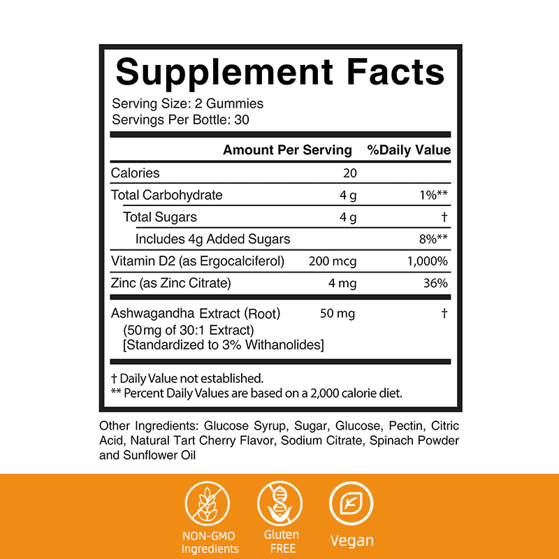 المكونات:مستخلص أشواغاندا (الجذر) فيتامين D2