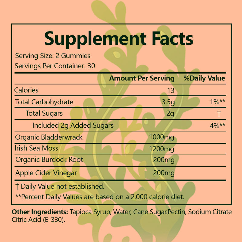طحالب البحر الأيرلندية، عشب المثانة العضوي، جذر الأرقطيون العضوي، خل التفاح