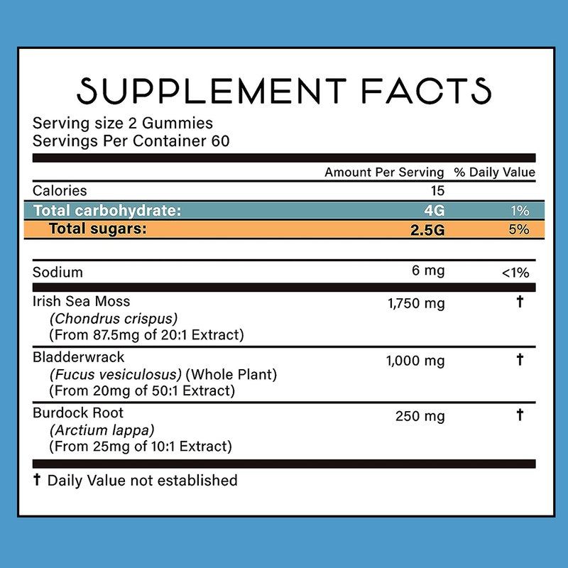 طحالب البحر الأيرلندية، عشب المثانة، جذر الأرقطيون، صوديوم
