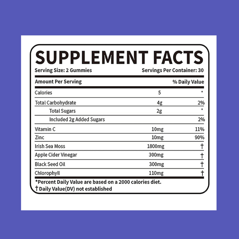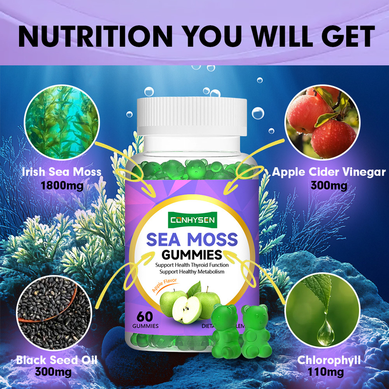 الخشب البحري الأيرلندي، خل التفاح، الزنك، فيتامين ج، الكلوروفيل، زيت البذور السوداء