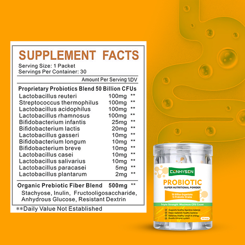 مسحوق بروبيوتيك من مصنع الشركة المصنعة لتوازن الجهاز الهضمي الصحي 50 مليار وحدة تشكيل مستعمرة