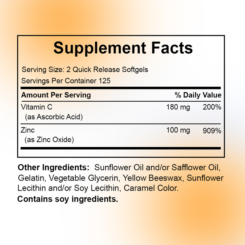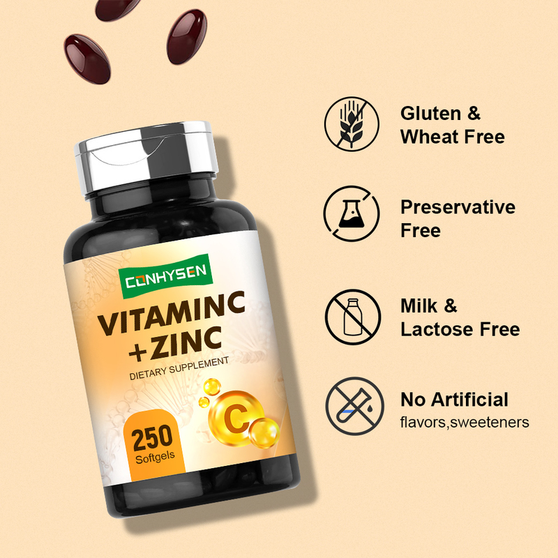 كبسولات فيتامين سي الهلامية مع زنك بسعر الجملة دعم مضاد للأكسدة مخصص